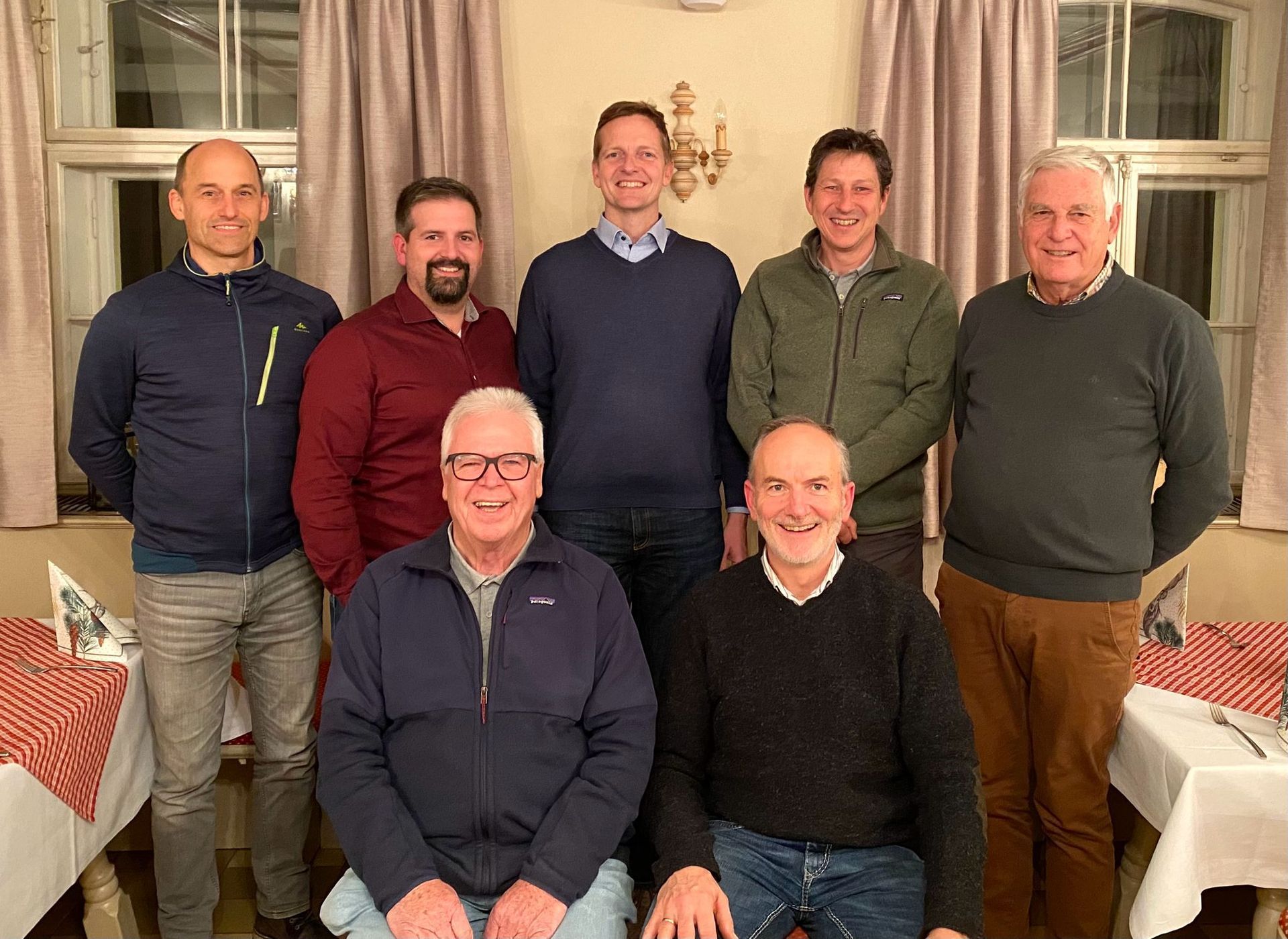 Die aktuelle Vorstandschaft des Fördervereins. Von Links nach Rechts: Obere Reihe: Franz Pertl (Beisitzer), Johannes Lang (Kassier), Simon Frank (Beisitzer), Andreas Wörndl (Schriftführer), Werner Weyerer (Beisitzer). Untere Reihe: Benno Pertl (Stellvertretender Vorsitzender), Franz Anner (1. Vorsitzender). Zudem engagieren sich noch Franz Vordermayer und Josef Hamberger als Rechnungsprüfer (nicht abgebildet).